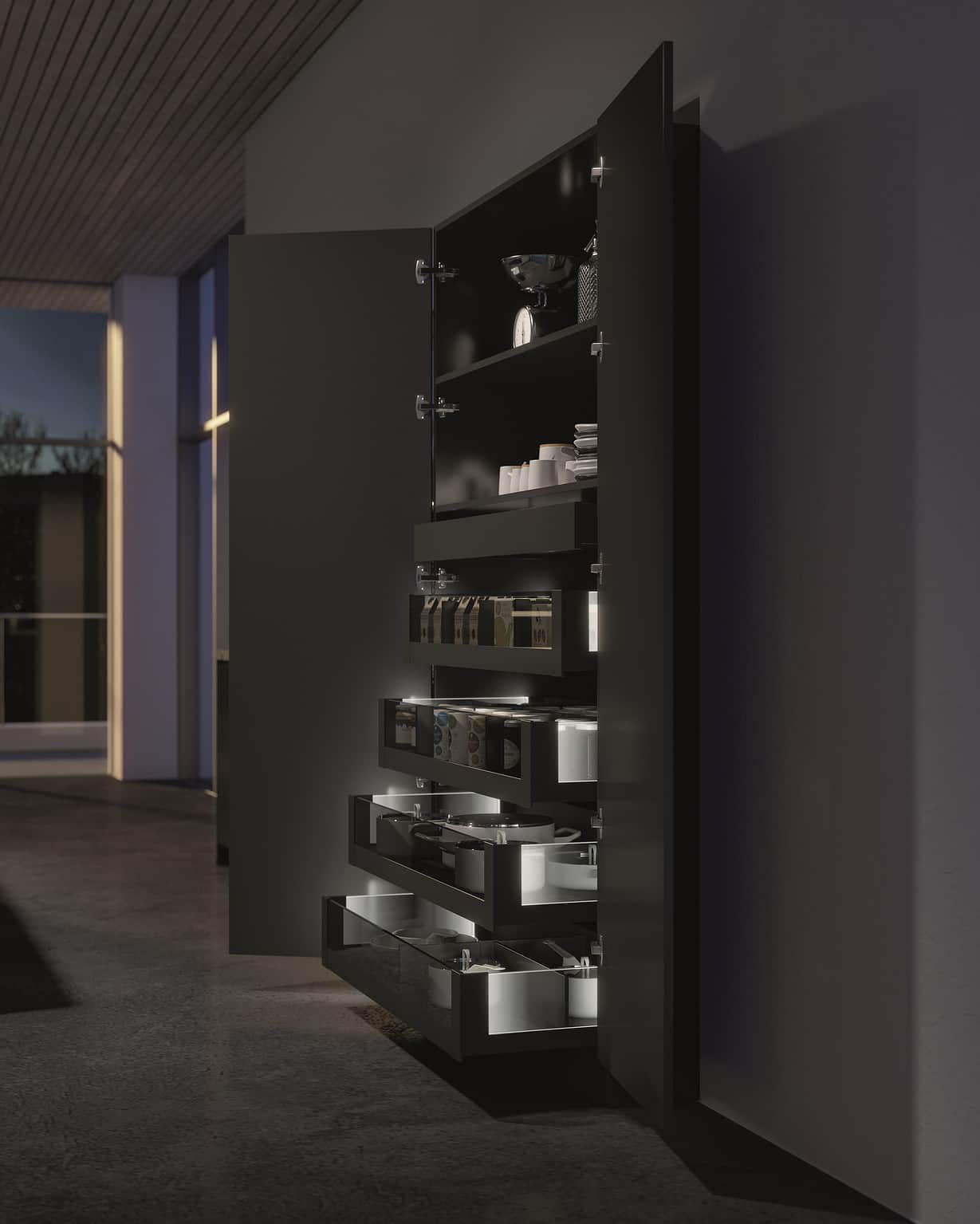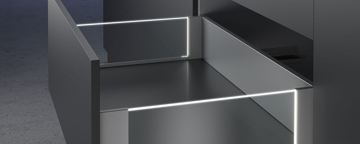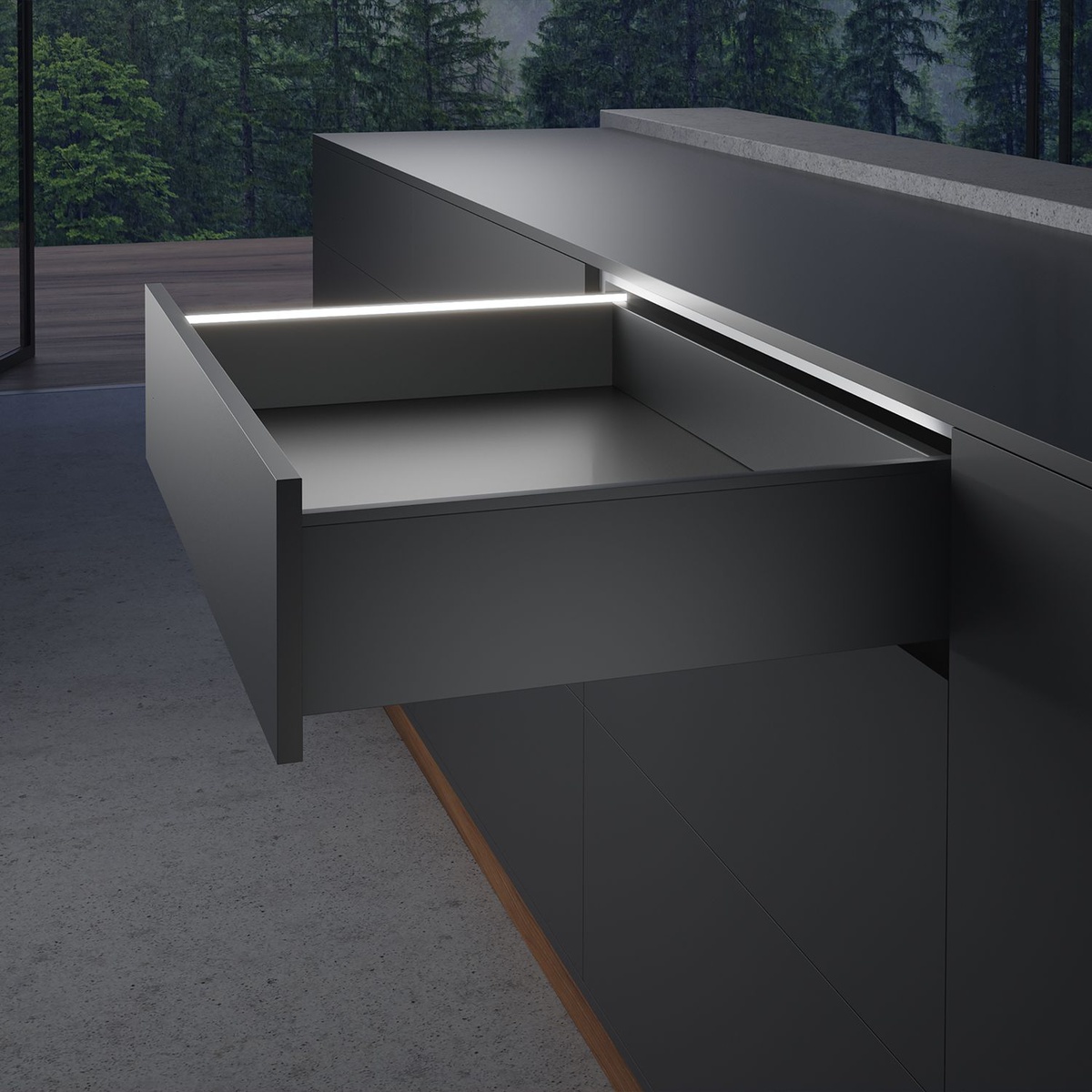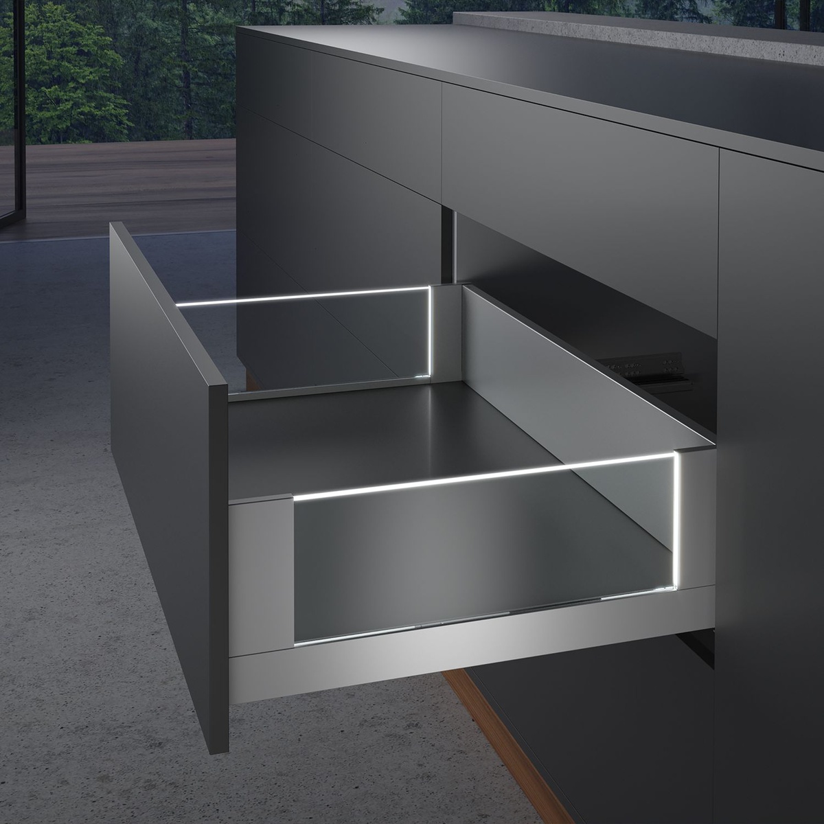 Lýsingin í skúffu þýðir að hlutir sjást mun betur og skapar stemningu í hönnuninni. Samhliða þessu nýtist þunn 13 mm hlið á AvanTech YOU skúffum til að tryggja betri nýtingu.